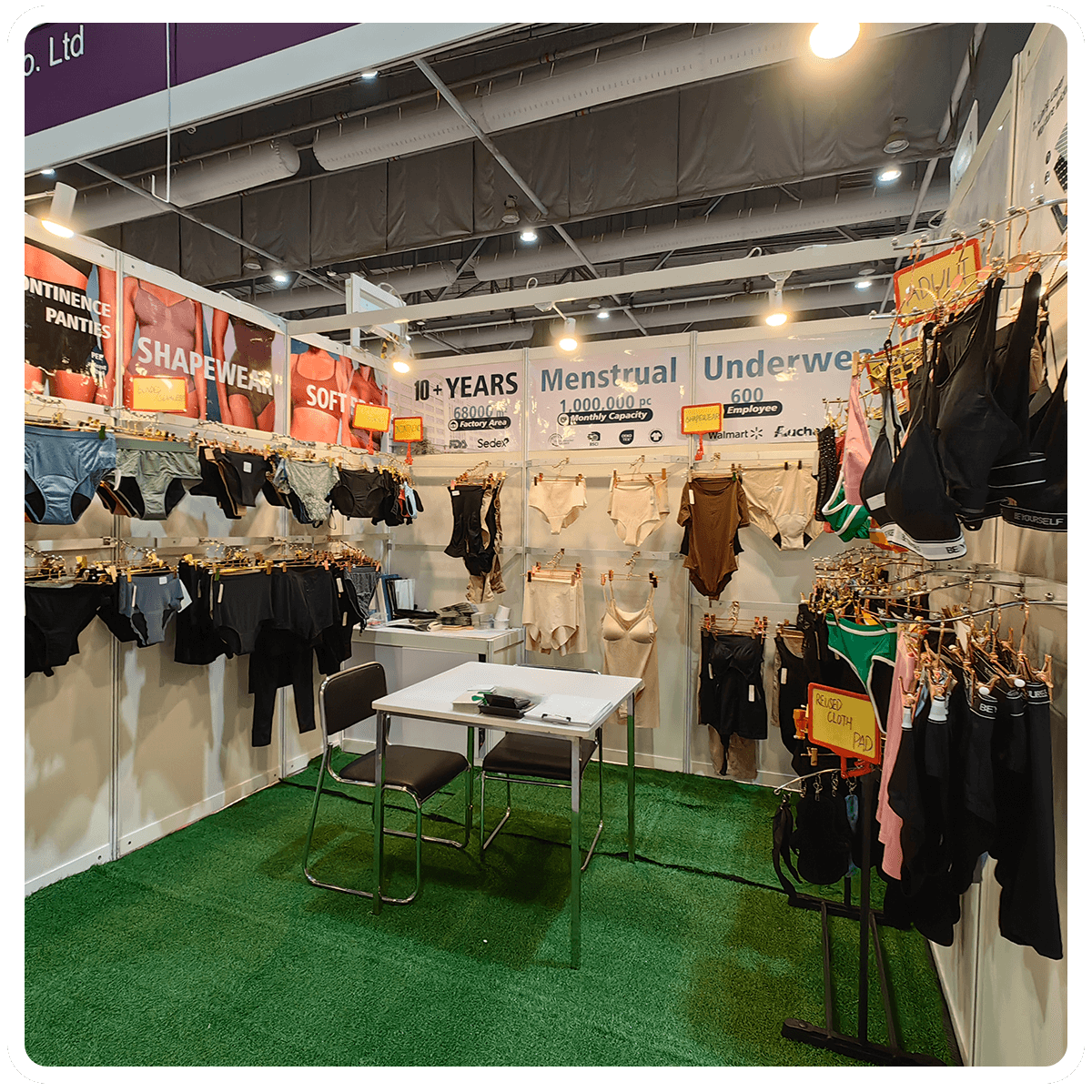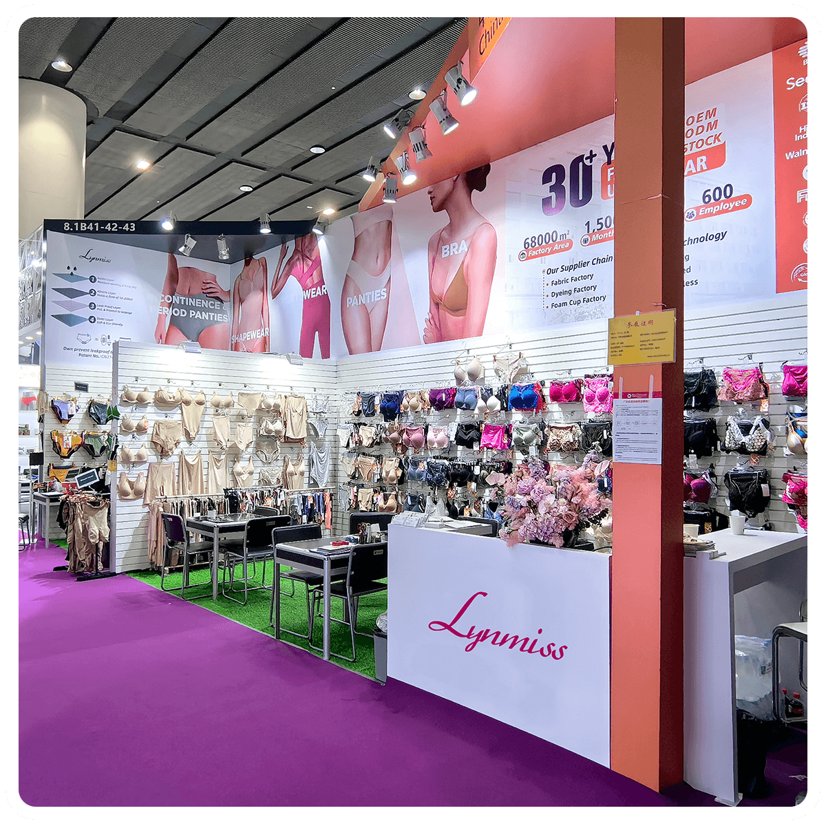 At Lynmiss, we don’t just manufacture underwear – we bring innovation, comfort, and functionality to the world.Over the years, we have actively showcased our period underwear, incontinence solutions, shapewear, lingerie, and loungewear at infuential exhibitions such as the Global Sourcing Expo in Australia, the Canton Fair in Guangzhou.and leading trade fairs in Hong Kong