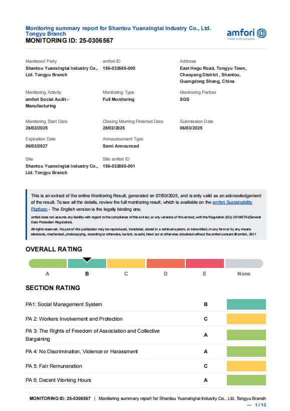 We continuously work to lower emissions, optimize resource use, and manage chemicals safely to protect both people and the planet. By incorporating recycled fabrics, trims, and packaging into our product development, we actively contribute to a cleaner, more sustainable supply chain.