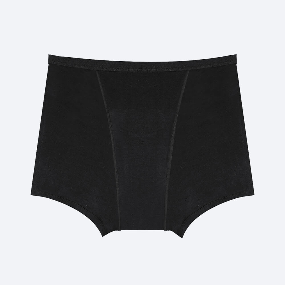 It’s a boyshort period underwear cut—so it covers more, stays put, and doesn’t ride up when you’re tossing and turning all night. Think sleepwear pants, but make it period protection. Roomy enough to be comfy, fitted enough to actually work.