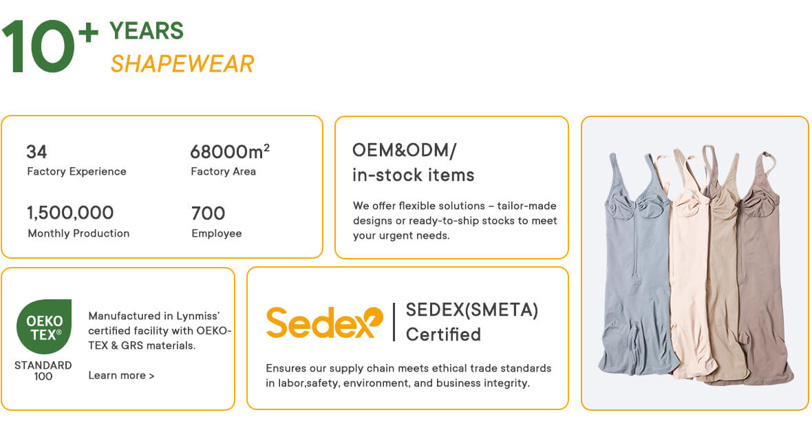 We don’t guess on fit. Every panel is engineered with purpose—bust, core, butt, and crotch each get the compression and construction they need to perform. Our production process ensures those specs hold across every size run and every bulk order. No variation. No surprises. Just consistent shaping you can build a wholesale catalog around.