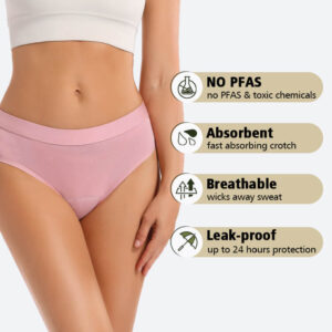 Secure snap closure with breathable cotton gusset. Easy bathroom access. Private label packaging options.