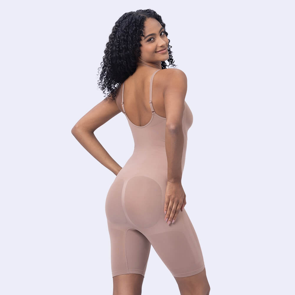 Mid-thigh length smooths hips and thighs seamlessly, preventing lines and chafing under fitted outfits.