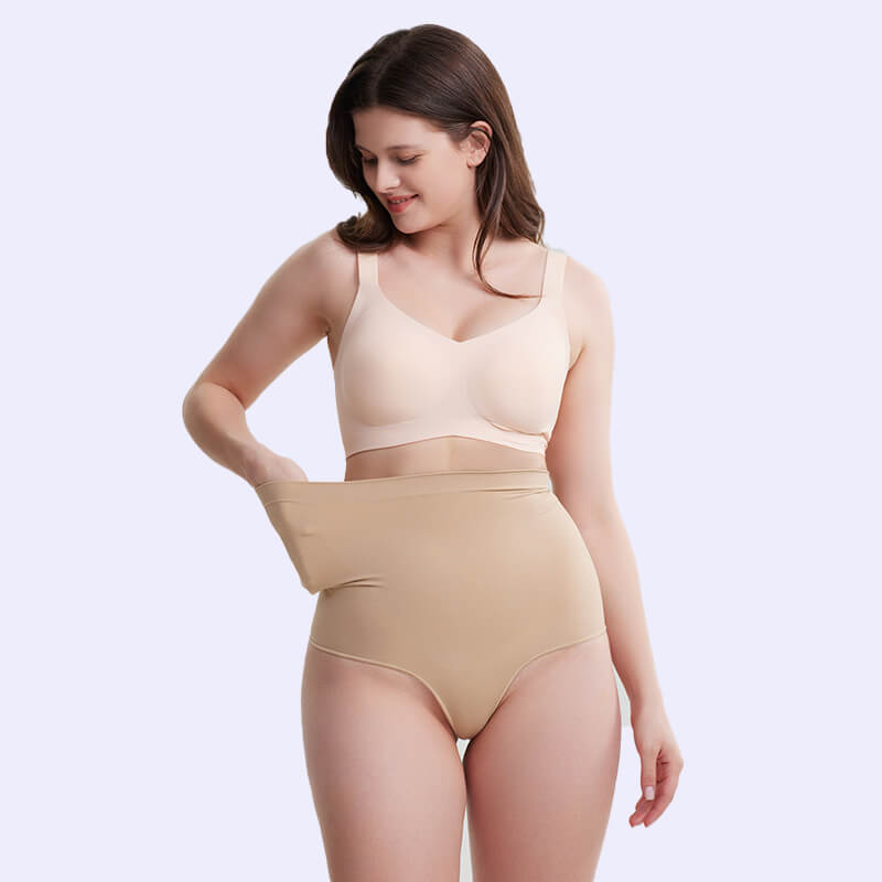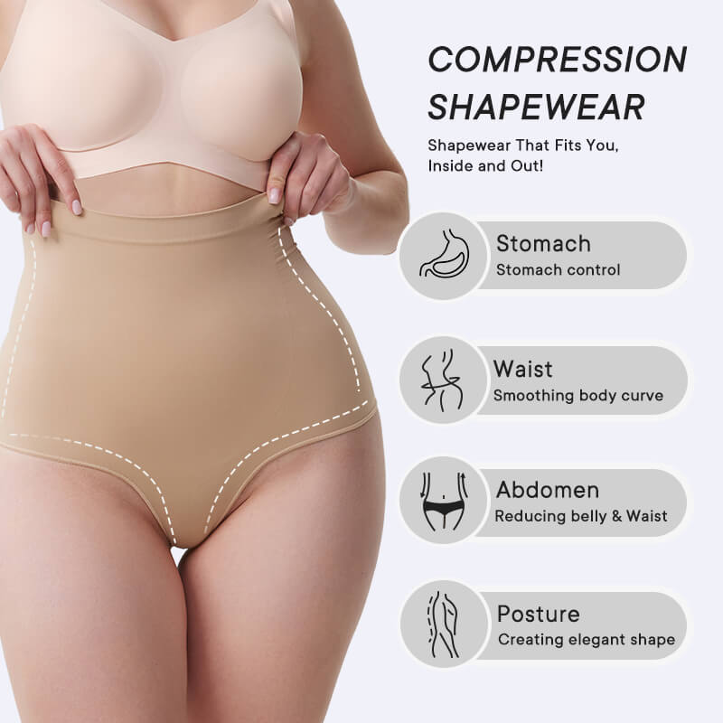 Targeted compression flattens the stomach and cinches the waist. Silicone band locks in place—no rolling.