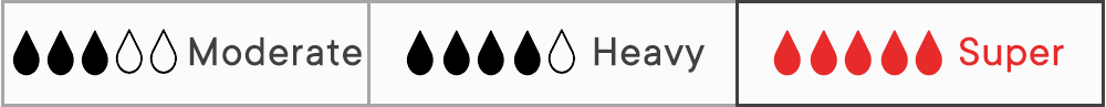 this is our maximum absorption style. It holds significantly more than our moderate options—enough for overnight wear and your heaviest days without leaks. If you’ve been doubling up with pads or waking up to change, this is the upgrade.