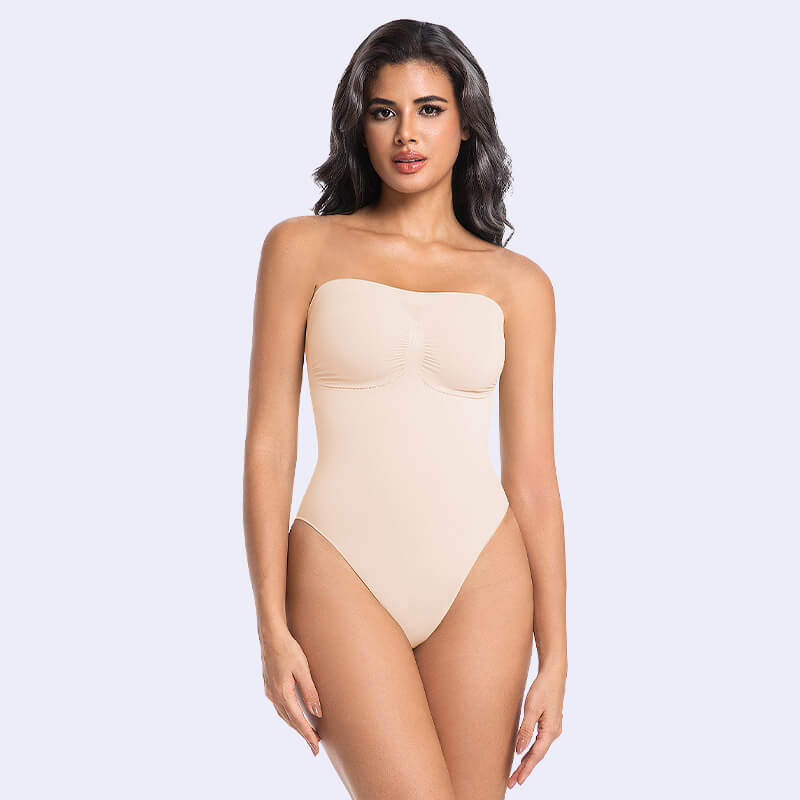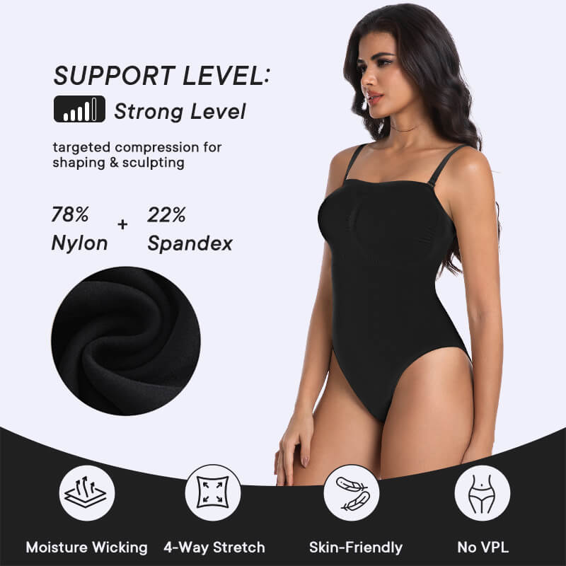 The top edge is engineered with a no-roll design that prevents slipping and rolling down. This solves the #1 complaint buyers have about strapless shapewear: constant adjustments.