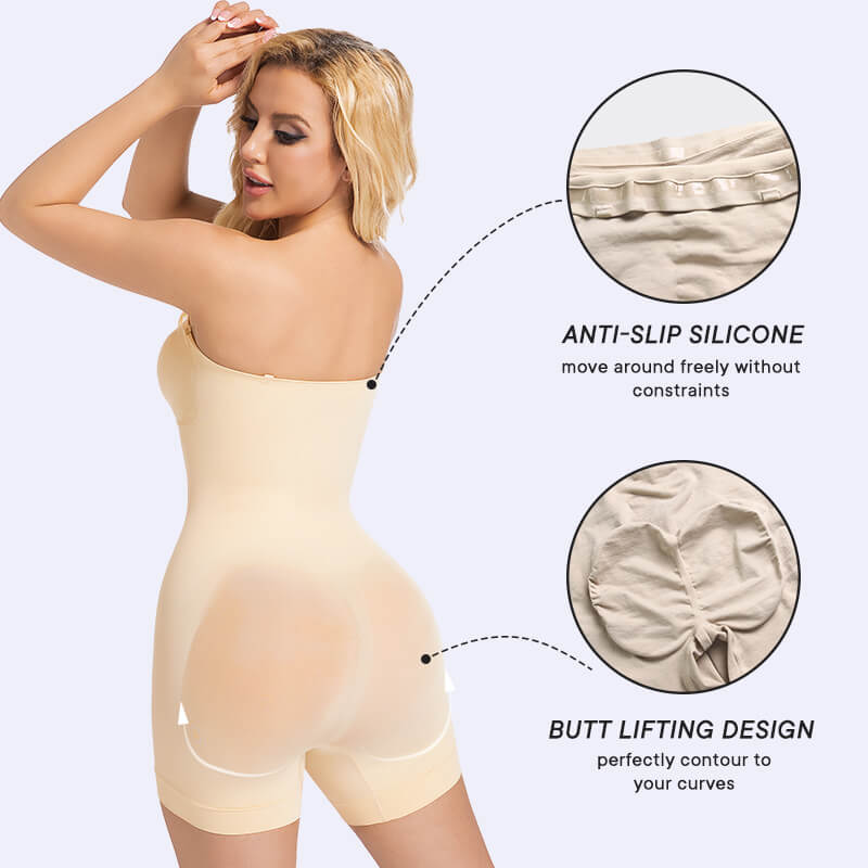 Strapless Thong Bodysuit | Removable Straps Shapewear with Open Gusset LSK18